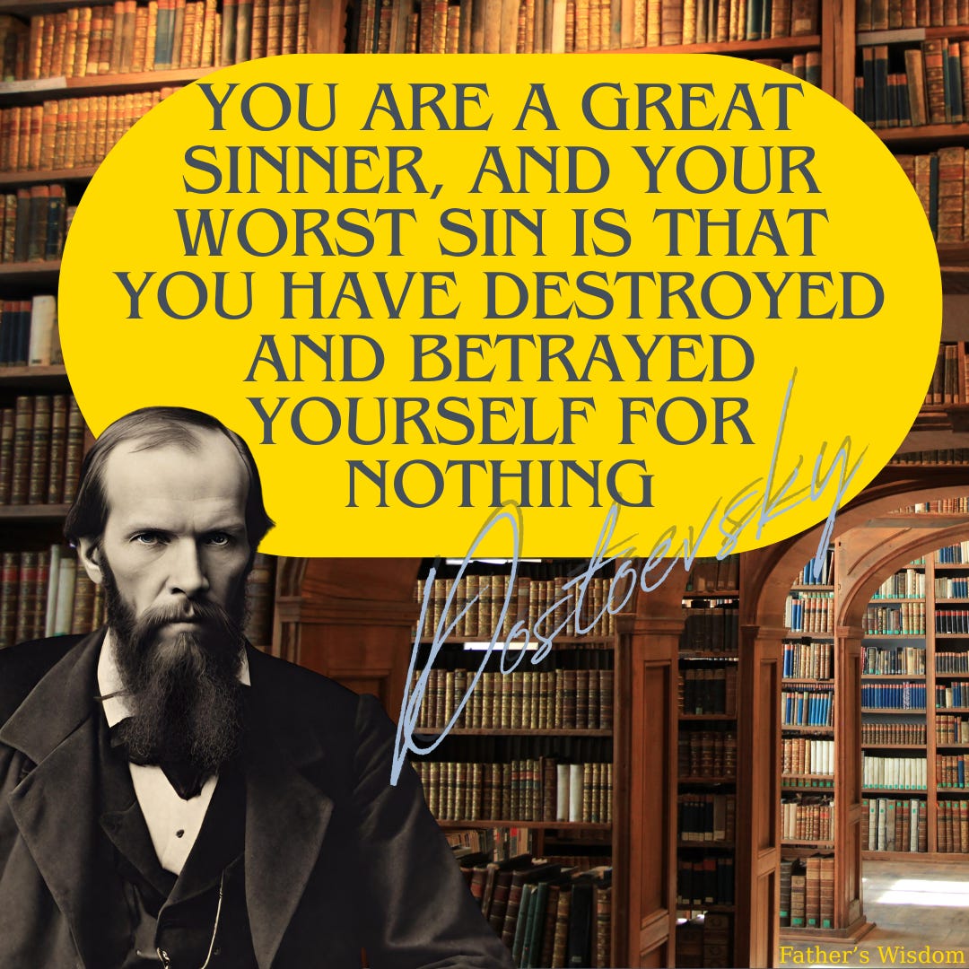 Dostoevsky didn’t write fiction, he wrote confession. He held up a mirror, and for the first time, I saw the truth. Not just about humanity, but about me. My pride. My arrogance. My delusions. I remember the moment vividly. I was sitting on the steps outside my graduate work-program, no one had shown up. So, I was reading and weeping. Deep, aching tears because I finally saw what I’d been blind to for so long: My sins were real. Not metaphorical. Not general. Mine. Faith alone, belief alone was not enough for the demons believe and are not saved.