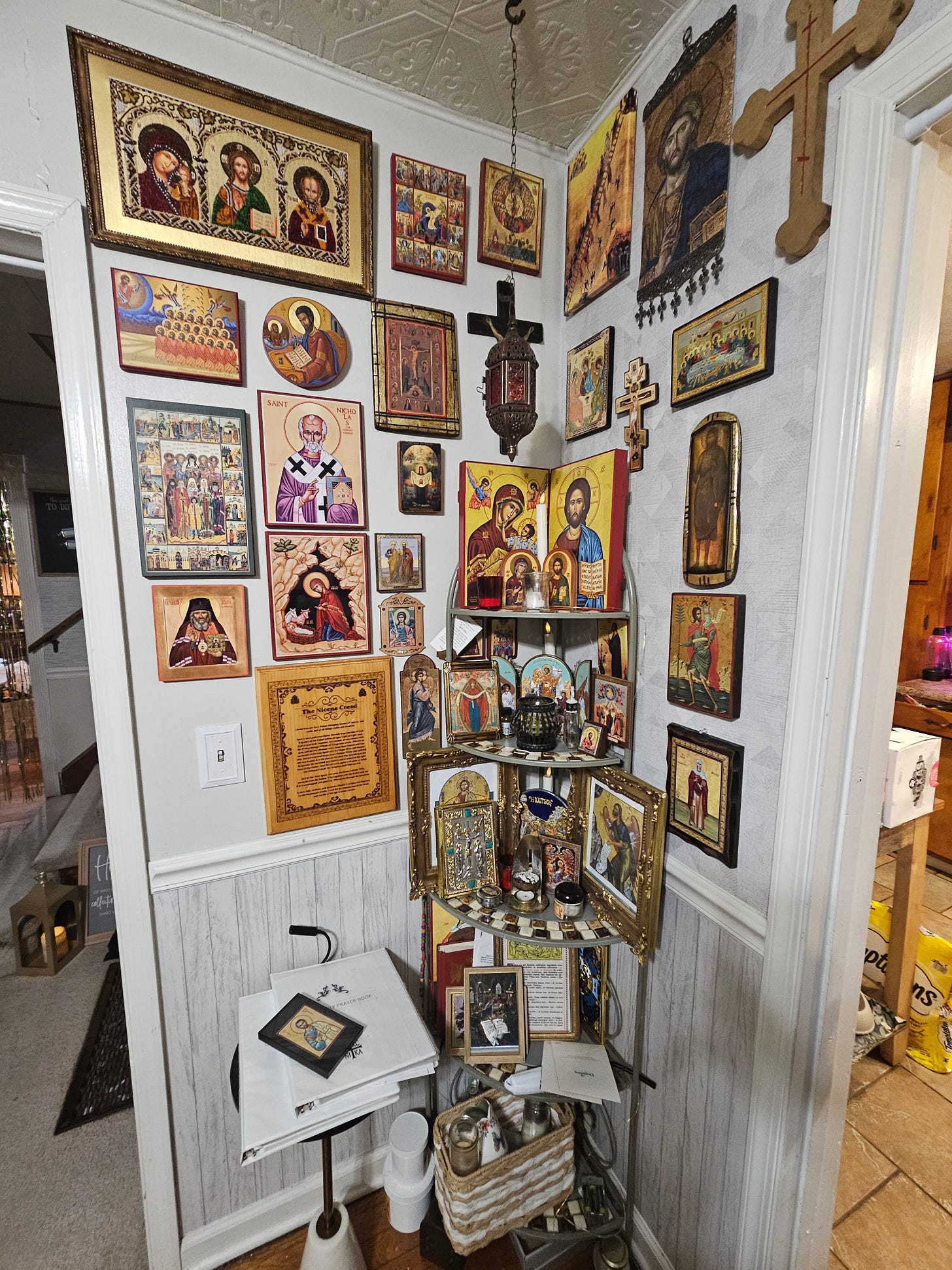 The icon corner is a daily practice of re-orientation. This is how you train the soul to recognize the Face that has always been turned toward you in love.